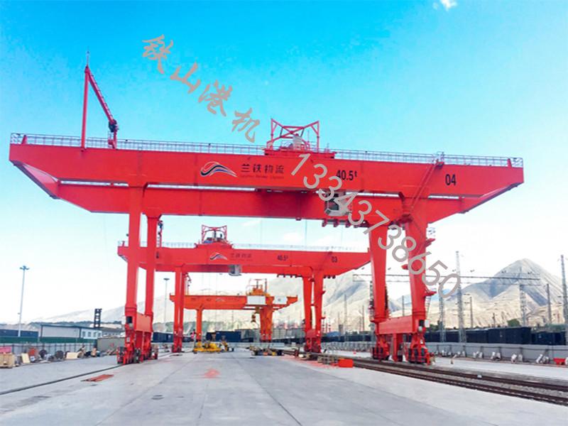 浙江湖州港口集裝箱龍門吊廠家設(shè)備的結(jié)構(gòu)與用途主要用于集裝箱鐵路轉(zhuǎn)運場和大型集裝箱儲運場的集裝箱卸載、搬運和堆放。軌道式集裝箱門式起重機由主梁、剛性和柔性門腿、運行小車、起升機構(gòu)、大車運行機構(gòu)、電氣系統(tǒng)、操作駕駛室等組成。軌道式集裝箱門式起重機一般要求門腿內(nèi)的寬度方向凈空較大,故采用門腿上部敞開成U形和門腿上部連通,并架設(shè)小車檢修架。軌道式集裝箱門式起重機能夠裝卸20′、40′、45′國際標準集裝箱。起重量一般36t、40.5t兩種。根據(jù)場地、集裝箱儲運工藝流程及裝卸的車輛的不同;跨度有26m、30m、35m之分;懸臂有無懸臂、單懸臂和雙懸臂等結(jié)構(gòu)形式之分;起升高度有堆三過四、堆四過五之分;上部小車旋轉(zhuǎn)與下部吊具旋轉(zhuǎn)之分。